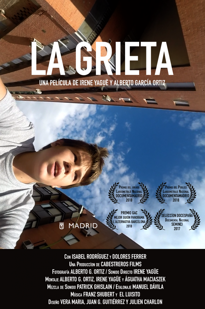 La Grieta retrata la lucha de Isabel y Dolores por conservar las casas de protección social donde han crecido sus familias. Viven en “El Cuadrado”, un edificio de ladrillo visto situado a los márgenes del río, en el barrio de Villaverde en Madrid, España.